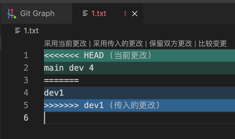git rebase --continue,vscode 可以直接用左侧边栏第三个源代码管理看显示为红色的文件 - 会继续出现下一个结点与现在冲突的内容,继续处理,直到最后一次 continue 会自动结束